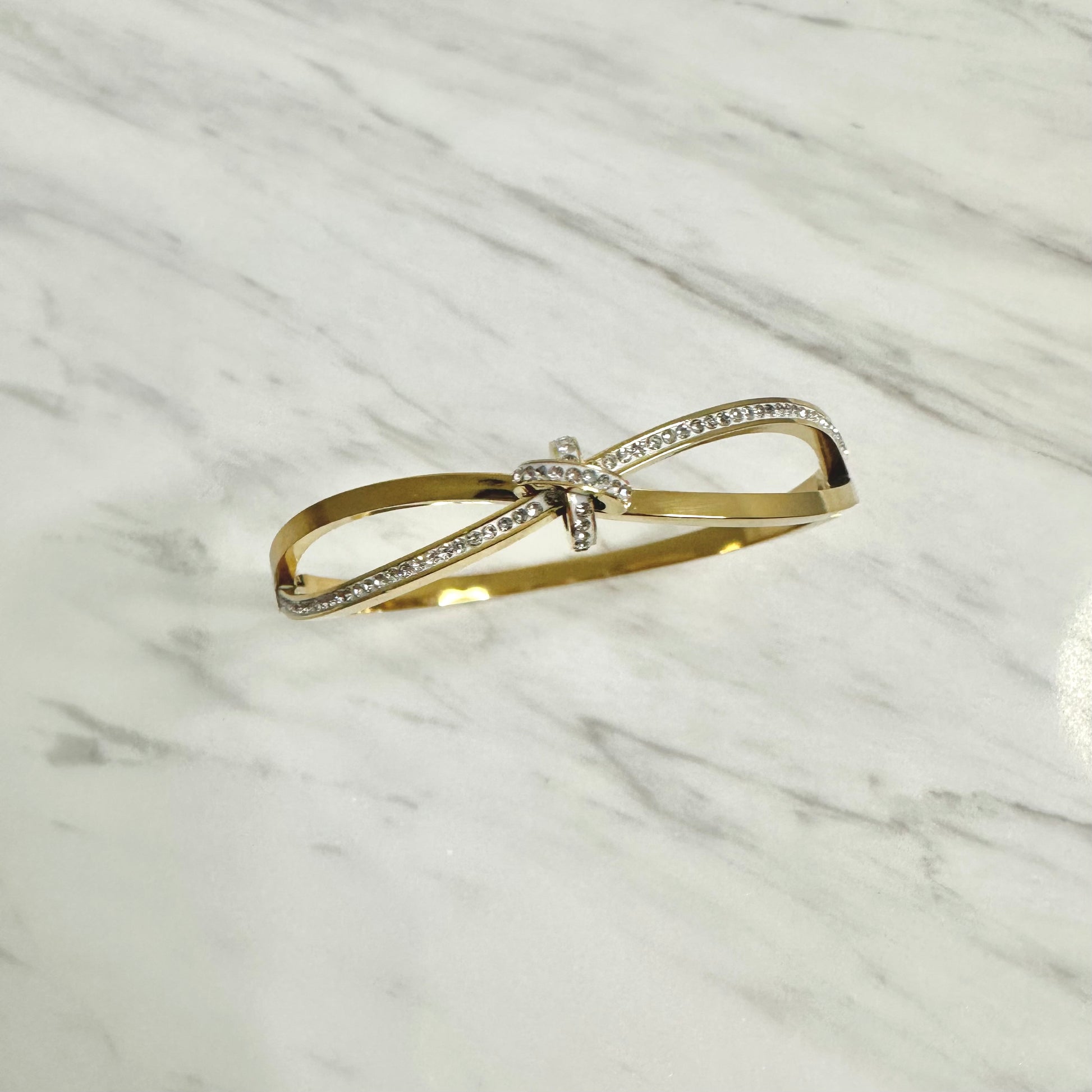 Bracelet jonc en acier inoxydable doré – Nœud strass élégant