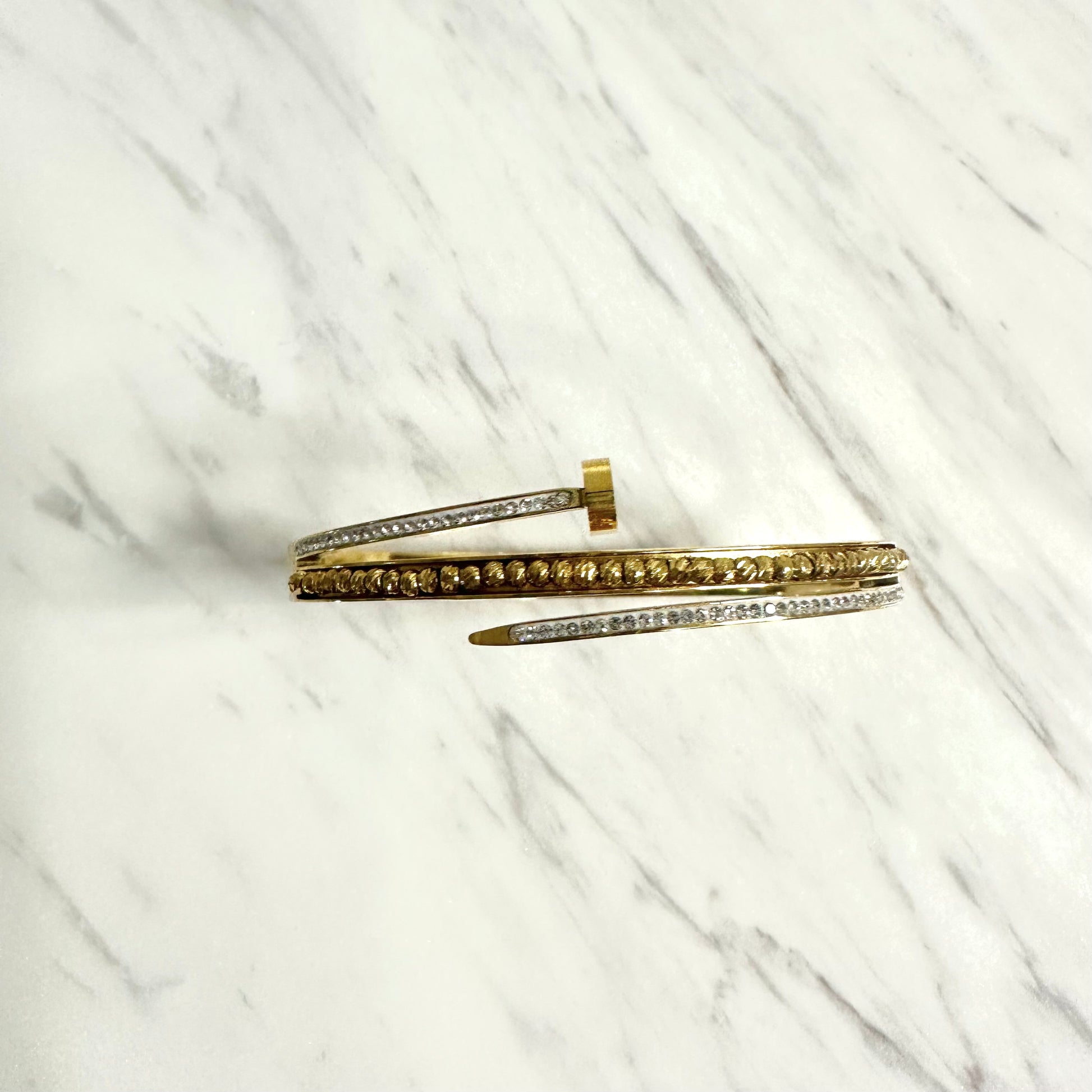Bracelet jonc en acier inoxydable doré – Strass bronze
