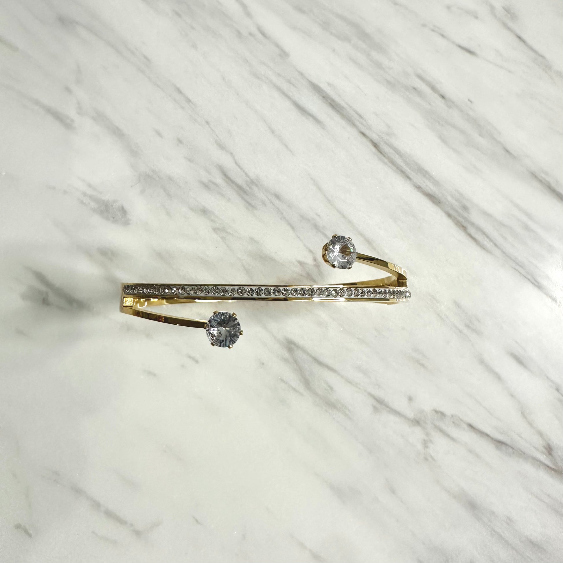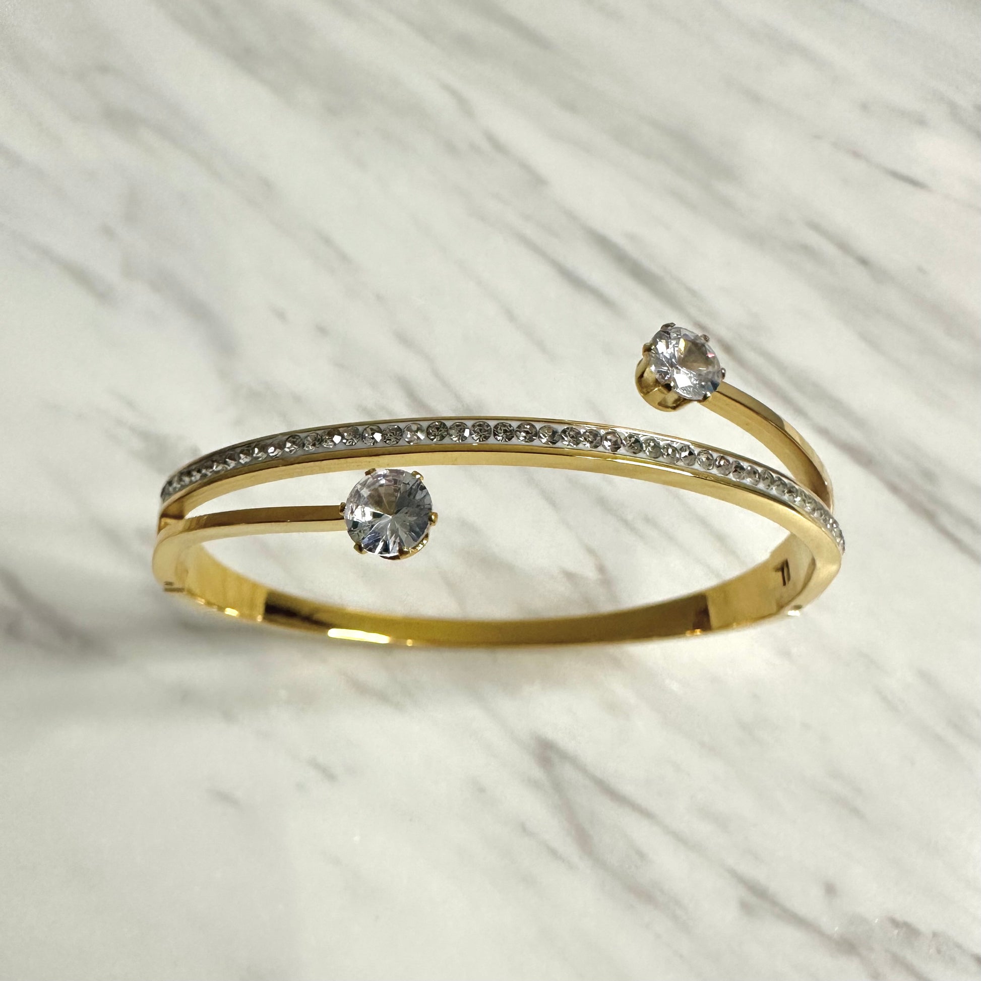 Bracelet jonc ouvert en acier inoxydable doré – Double strass